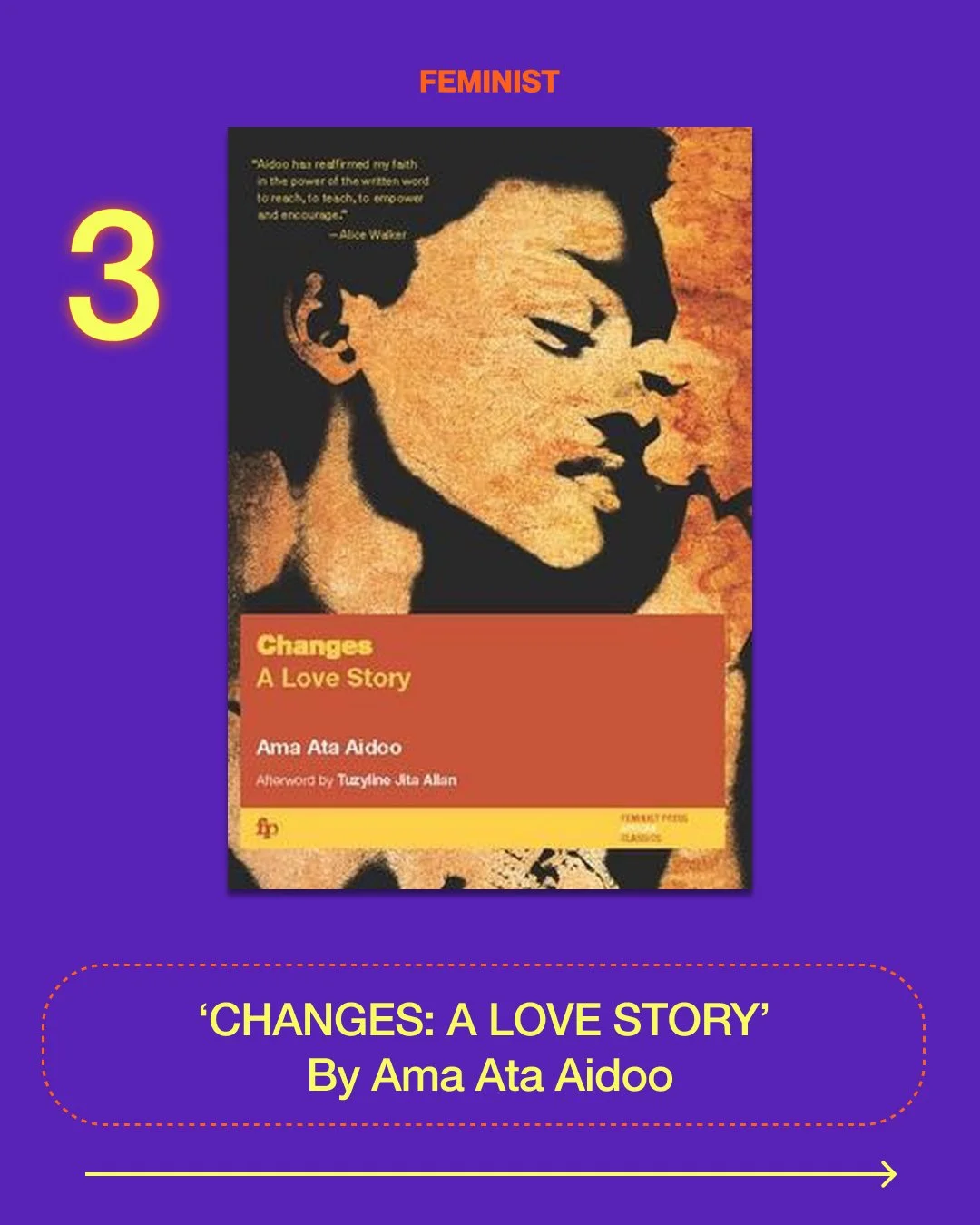 ‘Changes’, first published in 1991, remains a African feminist classic novel. The book is set in Ghana during the 1980s and offers a social commentary of the gendered and cultural tensions emerging in the context of Ghana’s changing and ‘modernizing’ society. Aidoo introduces these conflicts and themes through the character of Esi and her navigation of her romantic relationships, using love as an entry point into discussing the particular struggles and sacrifices ‘modern’ African women are confronted with.